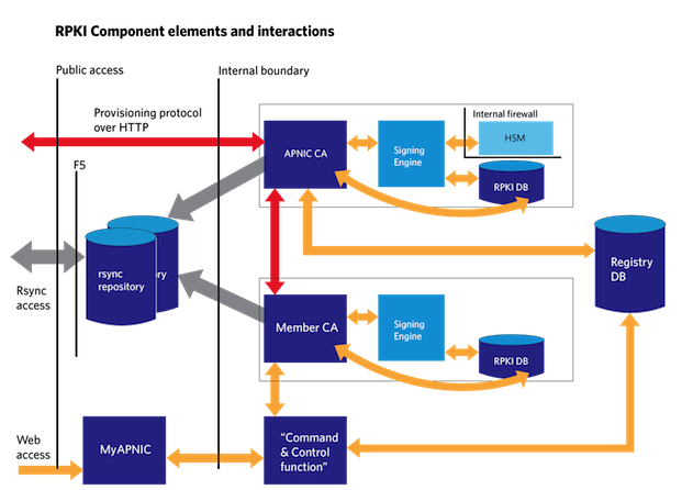 - Signing Engines optionally using Hardware Signing Modules (HSM) to secure keys, and perform RFC3779 certificate signing